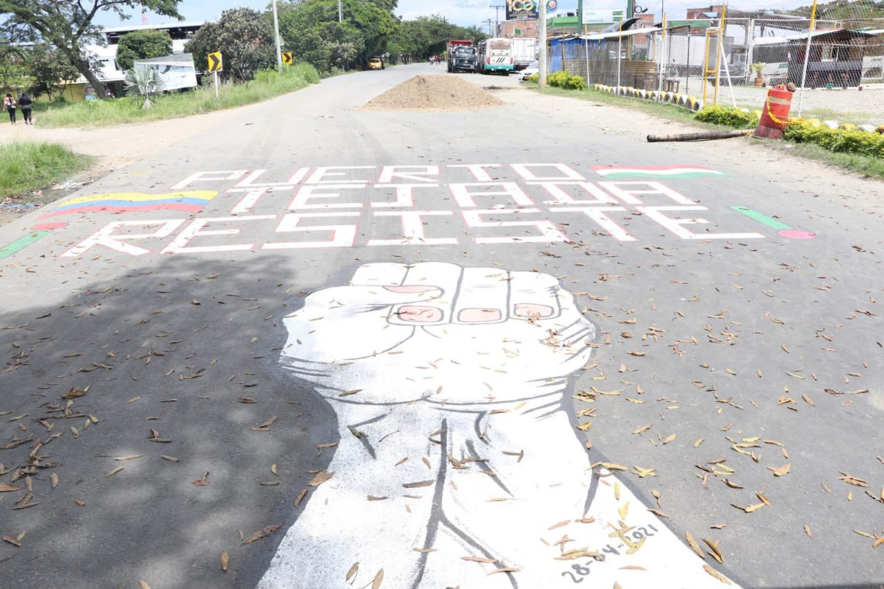 We continue to resist at this time in Isabela in the municipality of Puerto Tejada – Cauca, a blockade of the main road is being carried out with the control of the Maroon guard, who ensures the safety of the space.