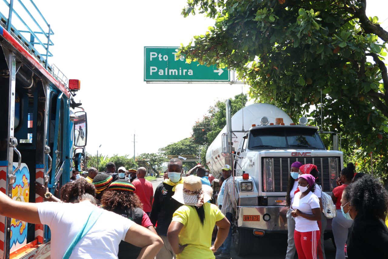 We continue to resist at this time in Isabela in the municipality of Puerto Tejada – Cauca, a blockade of the main road is being carried out with the control of the Maroon guard, who ensures the safety of the space.