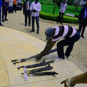 With his 40 men and 24 heavy and light weapons, Chief of the RM Ndarumanga Militia, Mr. MUNYOLOLO MMABO presented himself to the security services. The result of the combined efforts following all the DDR stages to allow a good reintegration.