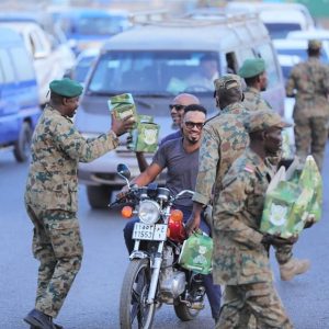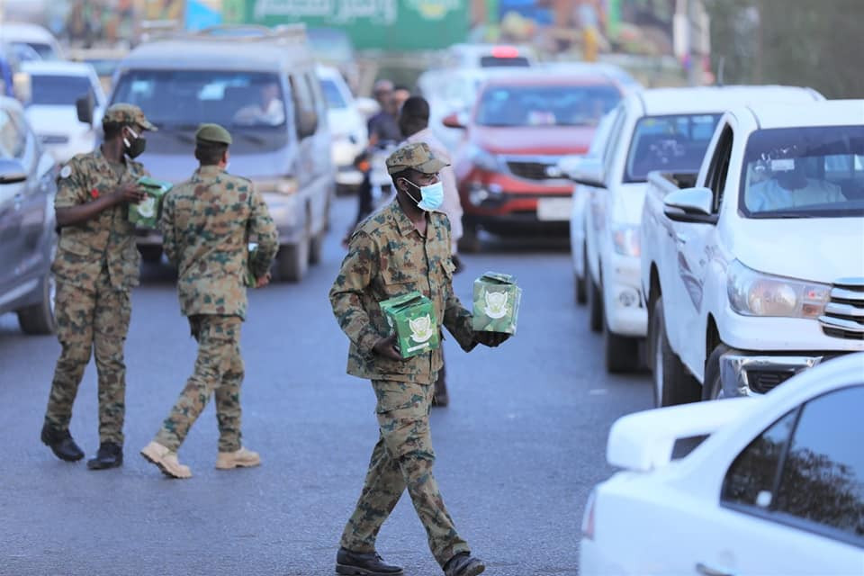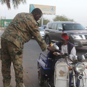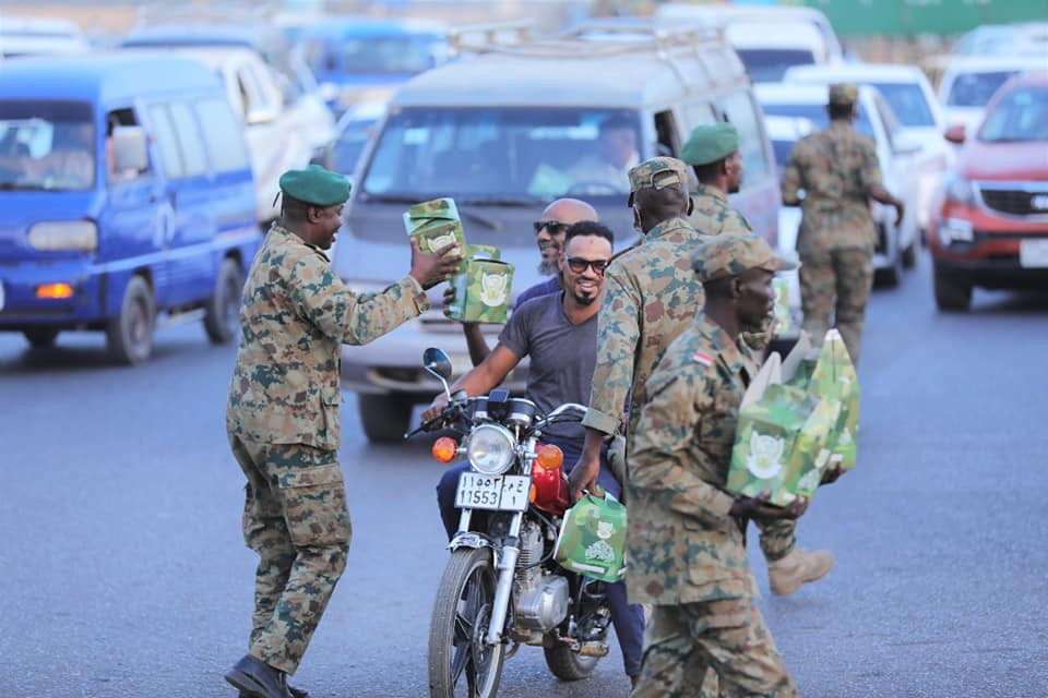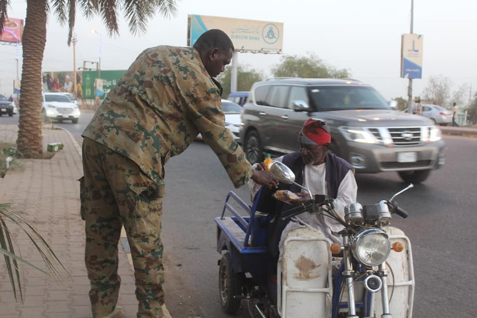 Everyday an hour before sunset the Sudanese National Army provides packages of ready food stuff to both the pedestrians and the automobile drivers on the streets of Khartoum for their breakfast [Iftar]